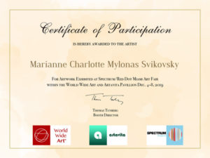 ACCUEIL » Spectrum Art Fair – WWA – Participation Certificate – Marianne Charlotte Mylonas Svikovsky